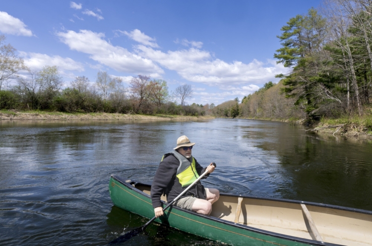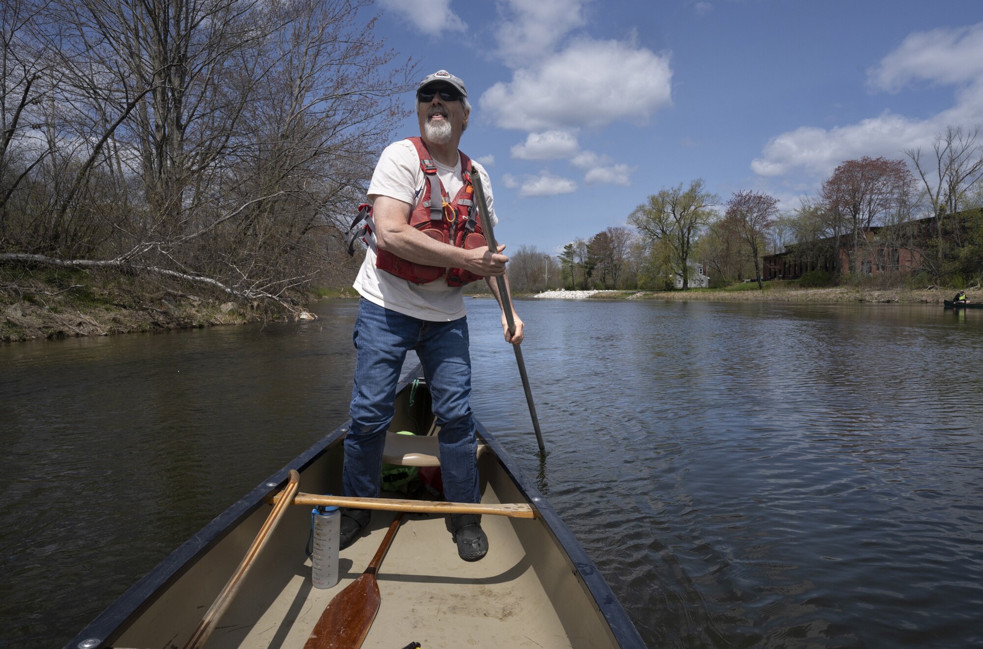 Michael Shaughnessy pushes off and settles in for a 5-mile paddle down the Presumpscot River on a sunny spring day.