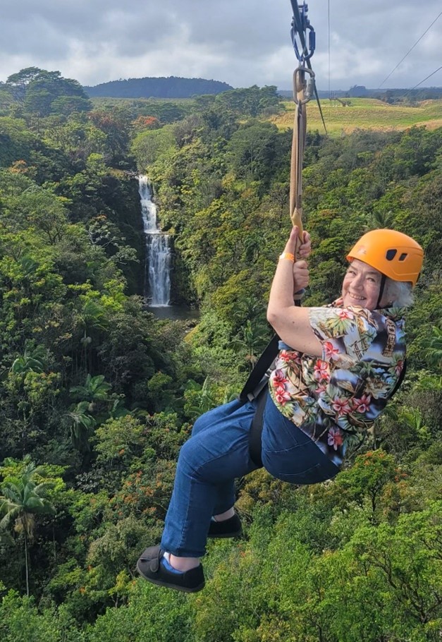 Sandy had an insatiable love of life and curiosity about the world around her. She loved traveling, especially to southeast Asia and Hawaii; though her favorite trip was a cruise to Alaska. She was always up for adventures, from tasting food with unidentifiable ingredients out of streetcarts in Beijing, to venturing onto clothing optional beaches in Hawaii and ziplining over tropical forests. Only a few months before she died, Sandy was ziplining in Hawaii. Sandy was disqualified from participating in this activity due to various medical conditions; however, the staff were unable to dissuade her from this event when she flashed her huge smile, and with childlike wonder in her eyes she declared “my heart is going to love this.” On every adventure she welcomed family and friends to accompany her. In 2018 Sandy volunteered on a medical mission trip to the Philippines, to provide basic medical attention to those less fortunate than her.