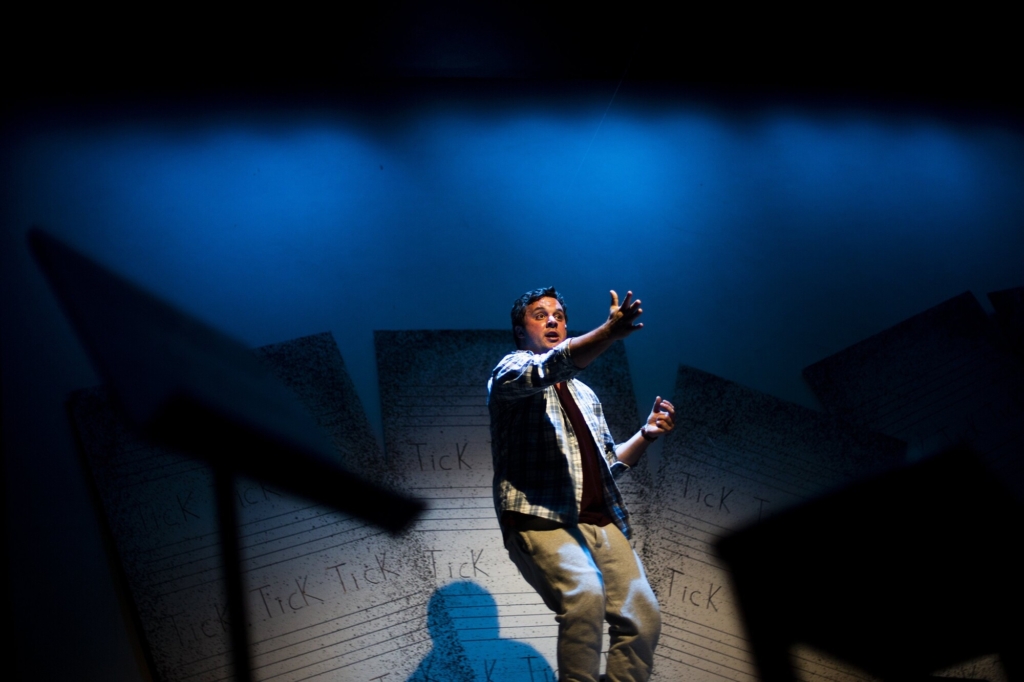 Jacob Zentis during a rehearsal for “Tick, Tick…Boom” at Hackmatack Playhouse in Berwick. Derek Davis/Staff Photographer