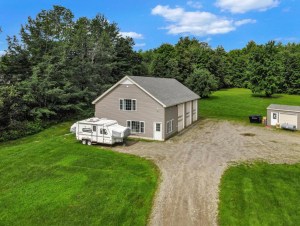 Become one with your garage at this energy-efficient home and mechanic’s dream in the heart of Maine’s beautiful lakes region. Three, 12-foot bays lead to an approximately 42×31 foot garage with 14-foot ceilings. On one side is a first-floor bathroom and office/bedroom, with stairs back in the garage to the second-floor kitchen/living area and second bedroom. On the other side of the garage are more stairs to access an additional storage room. Set on five acres, mixed with lawn and woods. Listed by Kara Bickford, Coldwell Banker Realty. See the full listing.