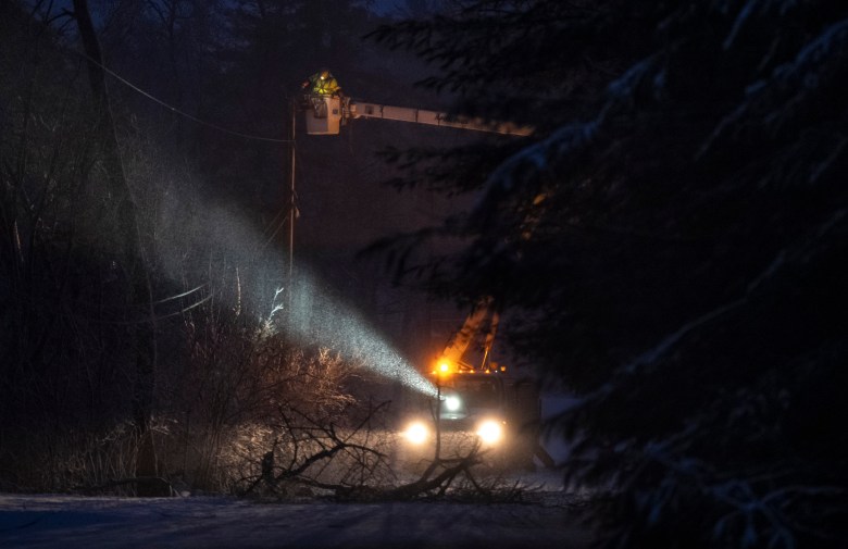 Ordway said crews have taken down trees but have not repaired electric lines. She’ll travel Saturday to a house in nearby New Hampshire “at least to take a shower,” she said.