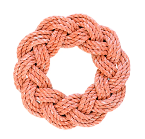 Made from 100% reclaimed lobster rope, this all-weather gem helps save the planet. 16.5” diameter x 1” thick.
