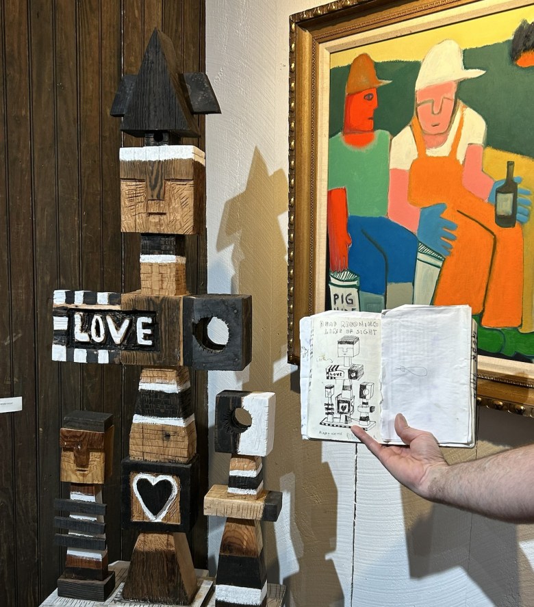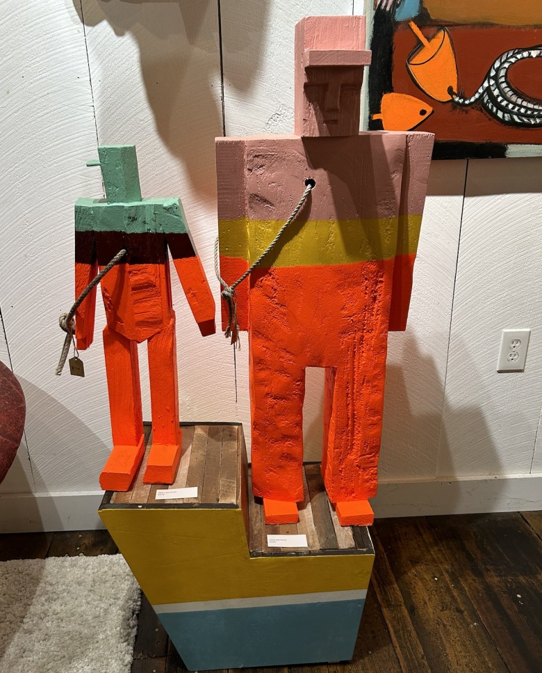 “Essentially, any piece of wood with a hole and rope pushed through is a buoy,” Barter said. “My first ‘buoy man’ started out as a fisherman sculpture with a rope through his heart. I’ve since made several iterations, including as part of this new exhibition.”