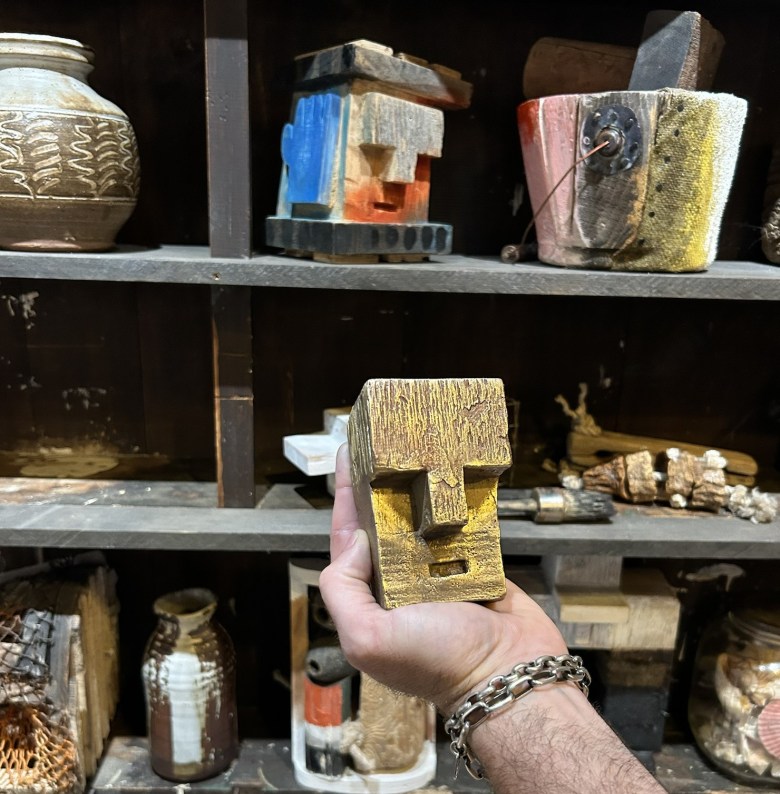 “When I began sculpting, I was trying to make the faces look too exact,” Barter said. “It was taking away from the quality of my work. One day, while making my son a ‘Don Quixote’ sculpture, I slammed a block of wood with a chisel, peeled it back and a small chunk flew off. Three strikes later, and I realized I’d made the perfect face.”