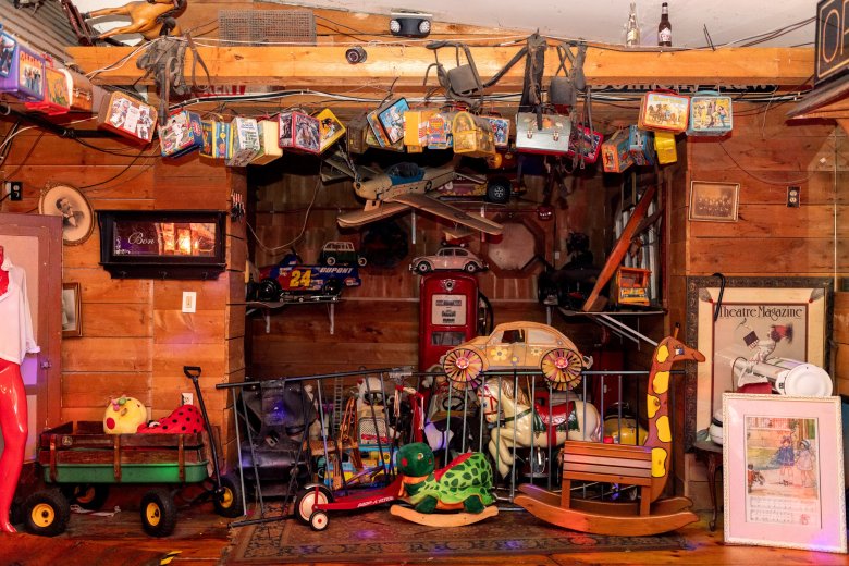 Over the years, he’s rebuilt the bars, tossed out pool tables, and installed dance floors. But he’s never sold or removed anything from his collections of things.