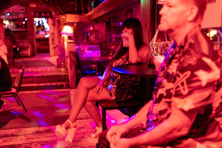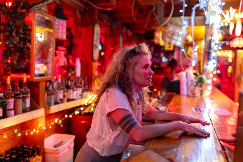 Maria Griffin, a regular, is the first customer in the door. She doesn’t drink, but she sips water at a table near the first dance floor. She’s been coming to Bubba’s since 2018 and met her boyfriend dancing there a few years ago.