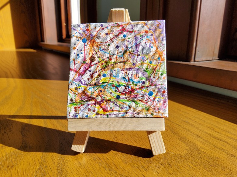 Participants can choose a painting kit that includes a 3-by-3-inch canvas and easel, acrylic paints and brushes, or sculpture kit with air-dry clay, brushes and acrylic paints. Adding to the provided supplies is encouraged as long as everything fits on the tiny canvas and the sculpture doesn’t get too big.