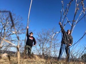 Warren and RJ at the top of Bradbury Mountain during a winter hike.
