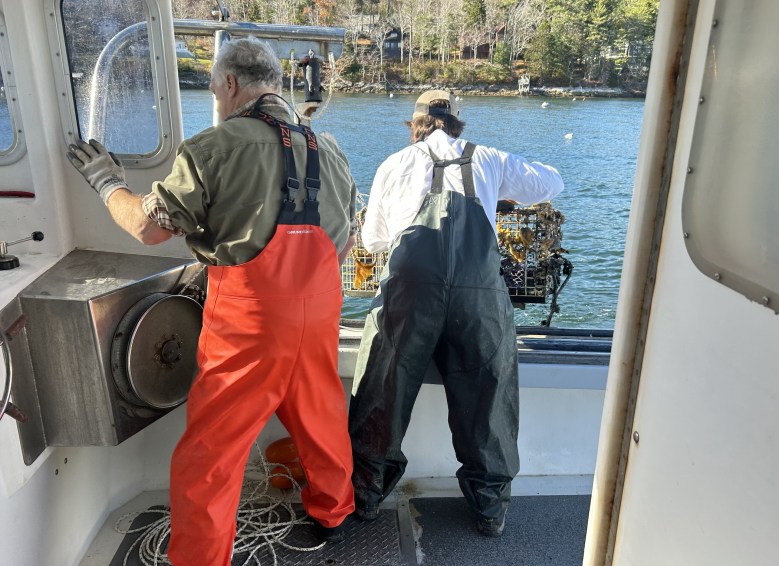 It was a brisk 47-degree day when a three-man crew — Louis, Scott, and volunteer Rich Obrey — boarded the Hurry Sundown. They were set to cruise from Eastside Waterfront Park to Linekin Bay Resort, where 25 traps marked with orange buoys awaited their arrival for hauling.