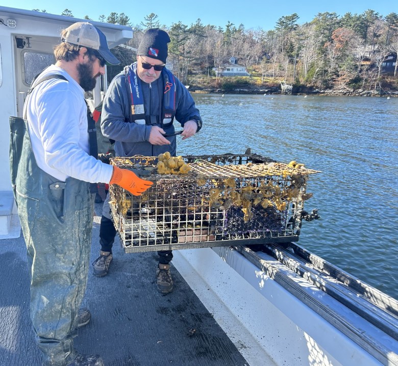 The National Oceanic and Atmospheric Administration (NOAA) and the University of Maine Sea Grant Extension fund a significant portion of this project. As such, they require the crew to collect data on the organisms that inhabit the traps.