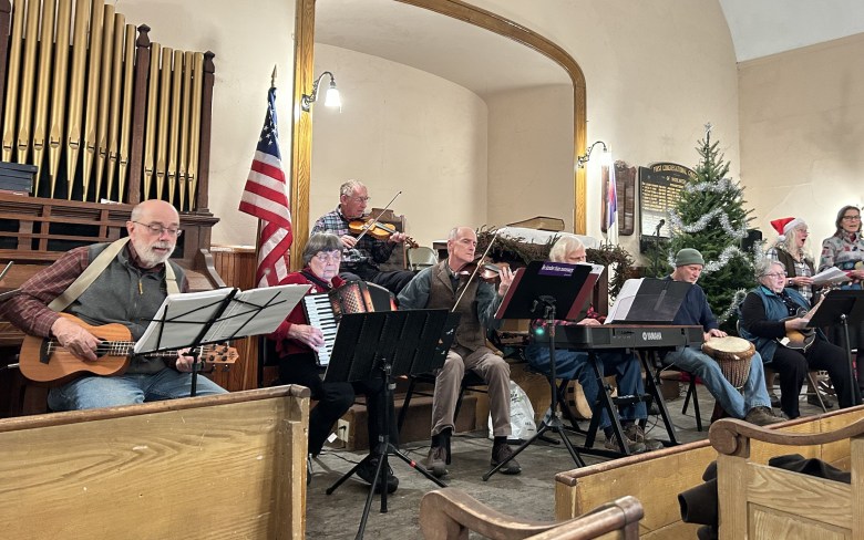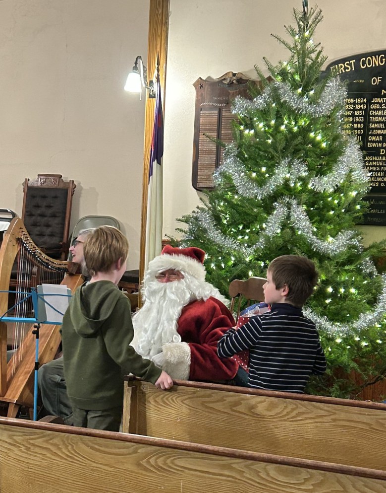 On Dec. 1, the Nequasset Meeting House opened its doors to a large number of visitors attending Woolwich’s annual Tree Lighting and Carols event. The Montsweagers entertained the crowd with popular sing-along classics like “Deck the Halls” and “The First Noel,” accompanied by free hot cocoa and treats. To wrap up the evening, Santa and Mrs. Claus distributed gifts to local children.