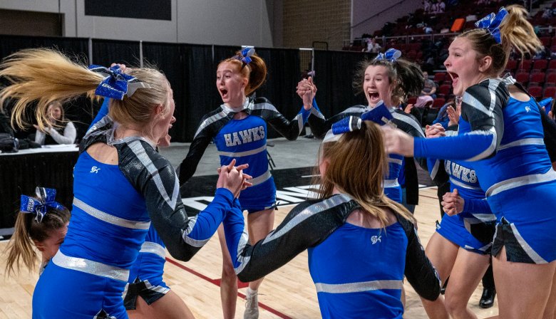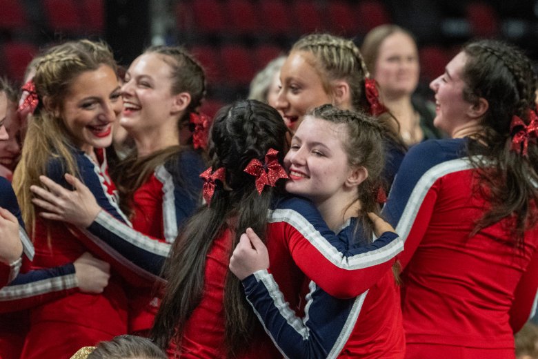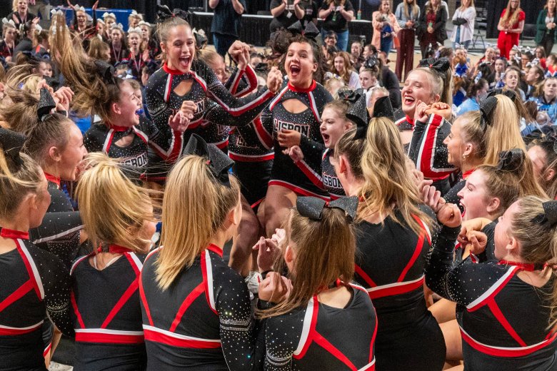 “It feels amazing; I was so stressed out all day,” said Lisbon senior Riley Hoyle. “Putting four stunt groups on the floor today, it was amazing to win.”