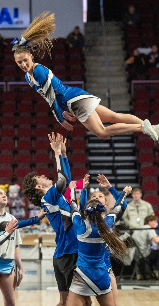 “Considering it wasn’t a clean hit, it feels good,” Lisbon head coach Nicole Adams said. “This year, there’s a risk, because we put more (cheerleaders) on the floor. The scoresheet is not designed for a lot on the floor unless they can all successfully hit it.”