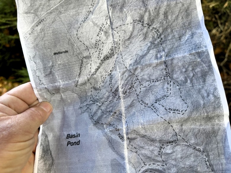 The Basin Pond land was recently purchased from the Town of Monroe by the Coastal Mountains Land Trust. According to Isgro, he contacted the land trust and they came out for a visit, hiked around, and liked what they saw. The sale later went to a town vote and was approved. An agreement has been signed and a survey and deed are in the works. That’s good news.