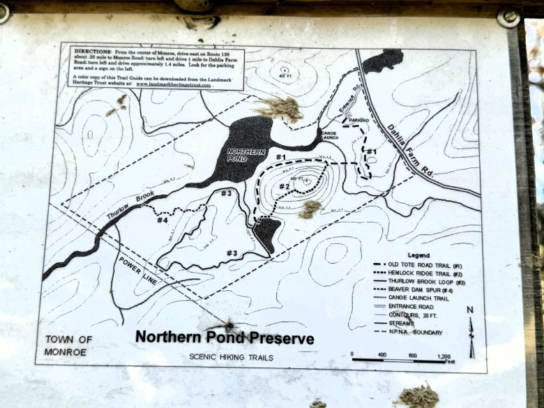 Northern Pond Natural Area is considered “the jewel of Monroe” by many in the area. Protected two decades ago, the town-owned 160-acre property encompasses the lovely 11-acre pond as well as a nice section of Thurlow Brook. Four trails totaling 3 miles of hiking wind through the preserve. Enjoy the mature stands of hemlock and be on the lookout for beaver activity. The hand-carry boat launch is an easy walk, so you may wish to consider a return trip with your canoe or kayak for further exploration.