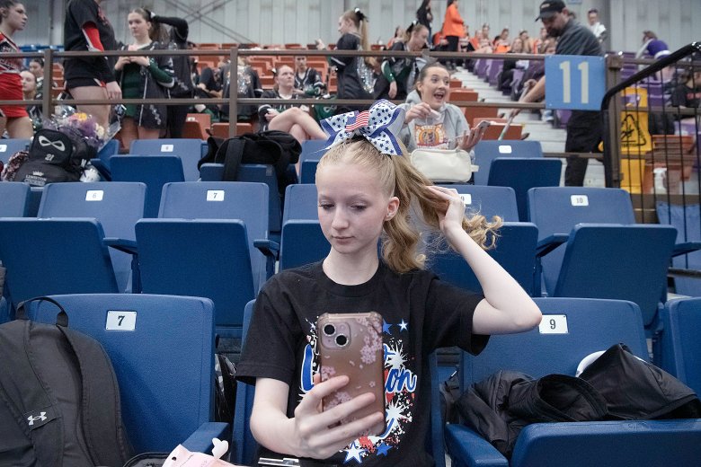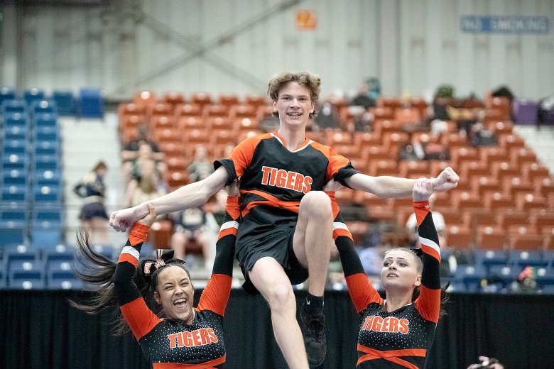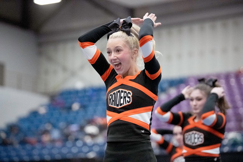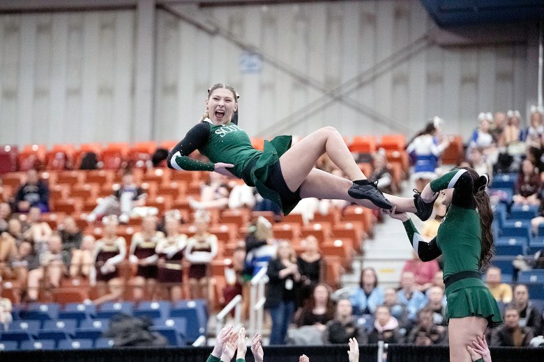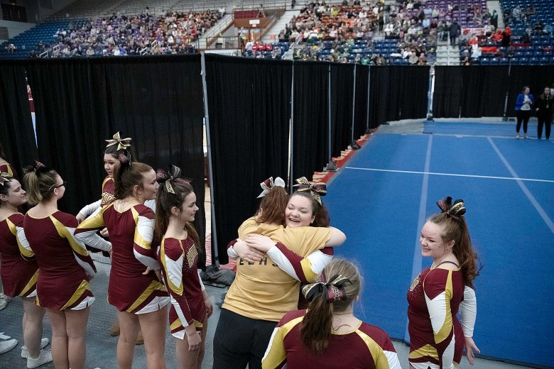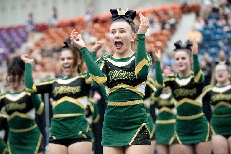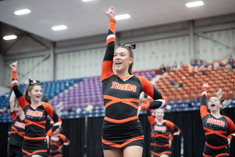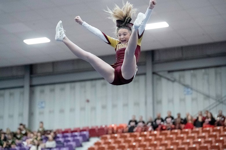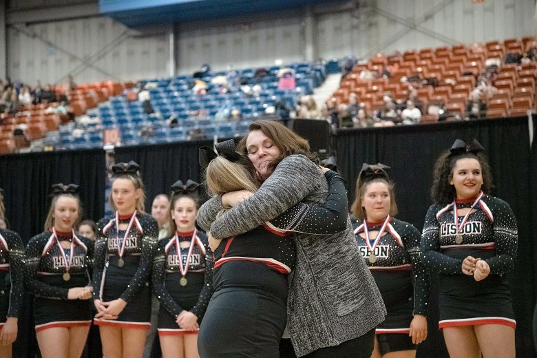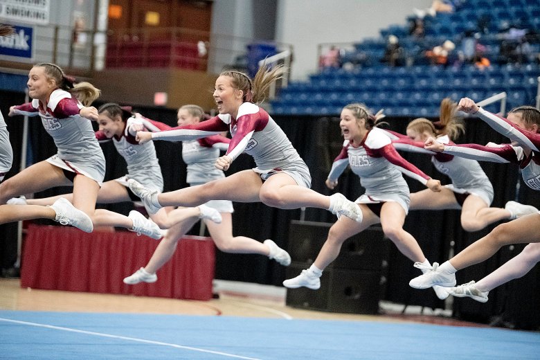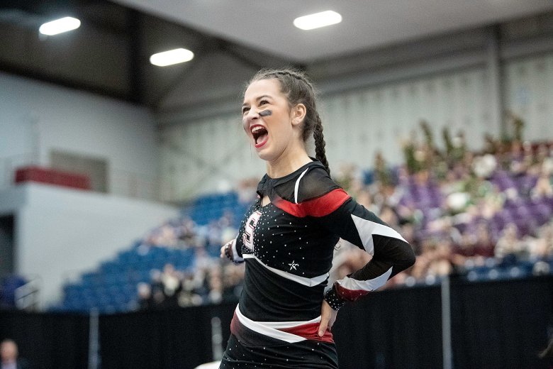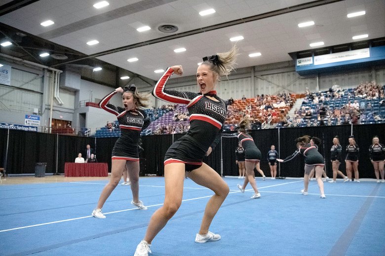 Lisbon’s Nevaeh Fortin was confident her team had done what it needed to do following its high-energy performance, the last of the 16 teams in Class C. Coach Nicole Adams added that the Greyhounds’ tumbling was well-executed and that the team’s stunts were by far its best of the season.