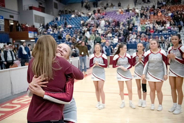From their coach to their cheerleaders, the Blue Devils agreed their routine was nearly flawless. Aubrey Wood, a senior, said the team felt “electric” as it left the mats, and coach Matt Hanley called the performance the best of Lewiston’s season.