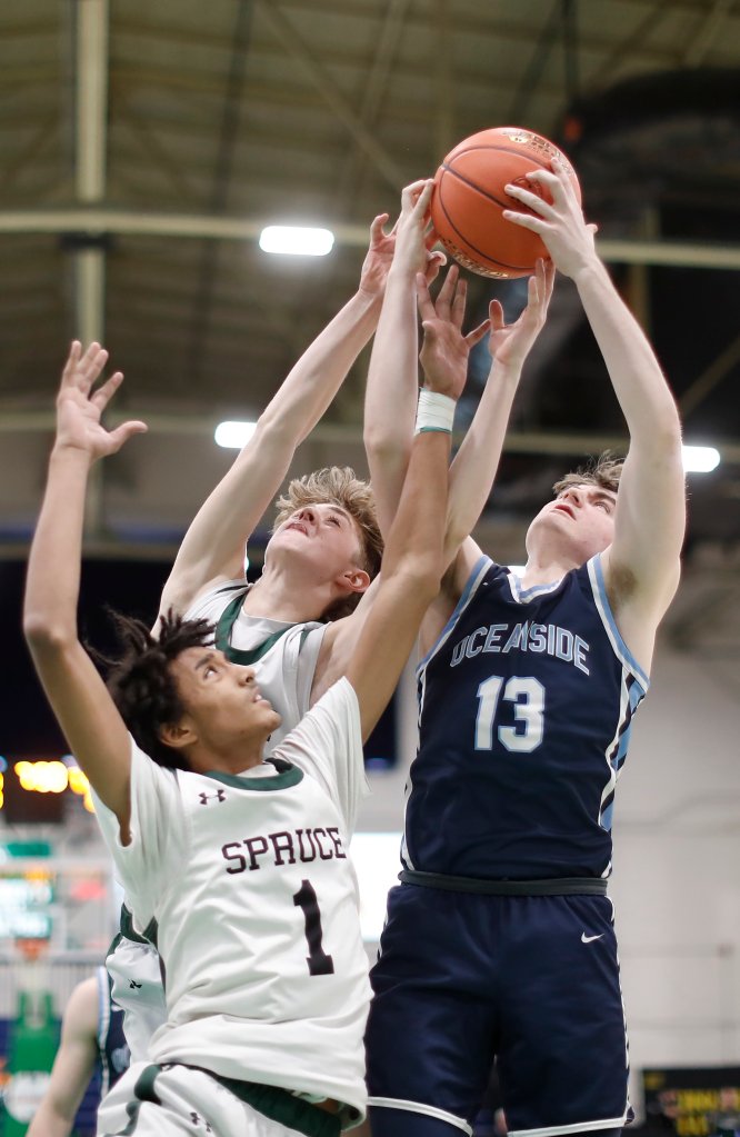 • With Oceanside burning the Phoenix from beyond the arc — the Mariners hit 10 3-pointers over the first three quarters, with five coming from Kingsbury — Spruce Mountain switched up its defense, going from a matchup zone to man-to-man defense. The Phoenix made the change midway through the fourth and allowed five points the rest of the way.