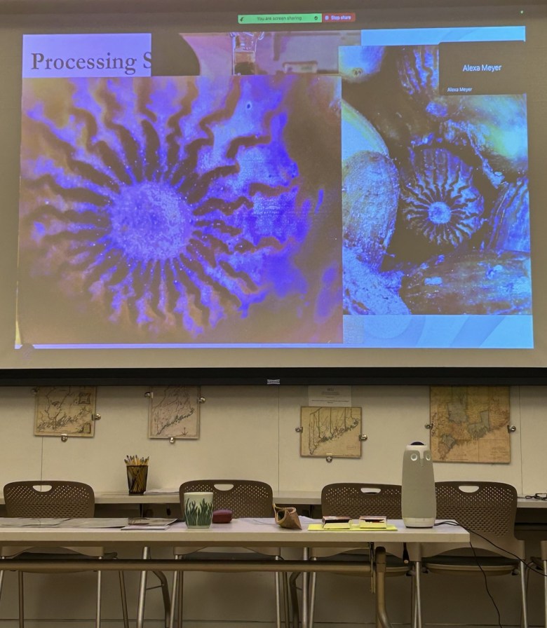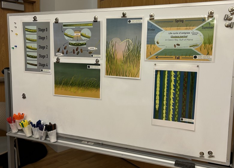 The event featured the work of Eva Ahn, a Bowdoin College student who, last summer, worked with Team Zostera on an independent study of eelgrass botanical illustrations depicting the stages of seed development.