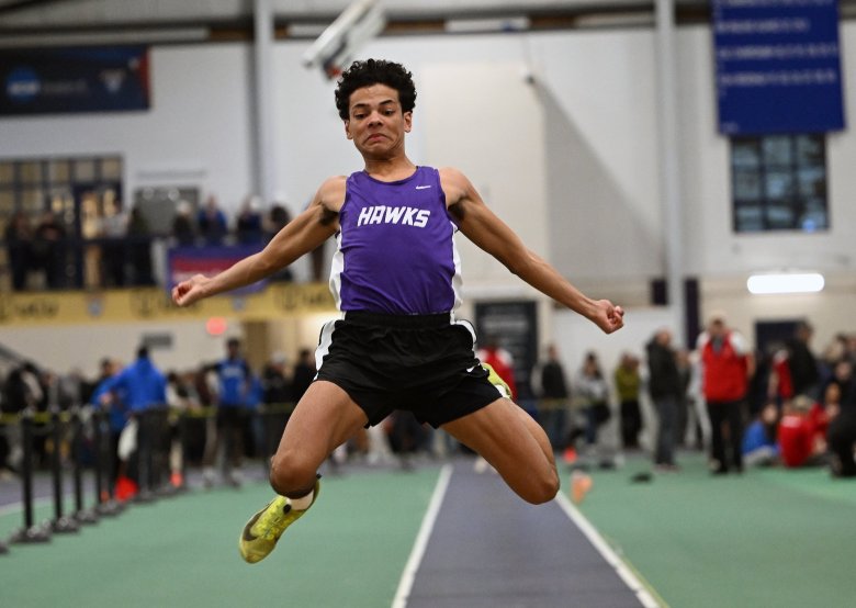 The only meet record came in the final event, as South Portland’s Arnaud Sioho blew past his 1-year-old mark of 46-10 3/4 inches with a winning triple jump of 48-6 1/4, nearly five feet further than second-place Fernando Kele of Lewiston. Sioho also won the long jump.