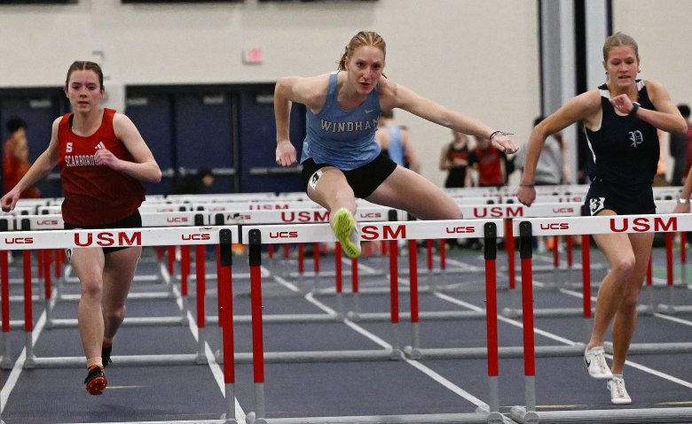 Windham’s Tayla Pelletier was also a double-winner, taking the girls 55 hurdles and triple jump.