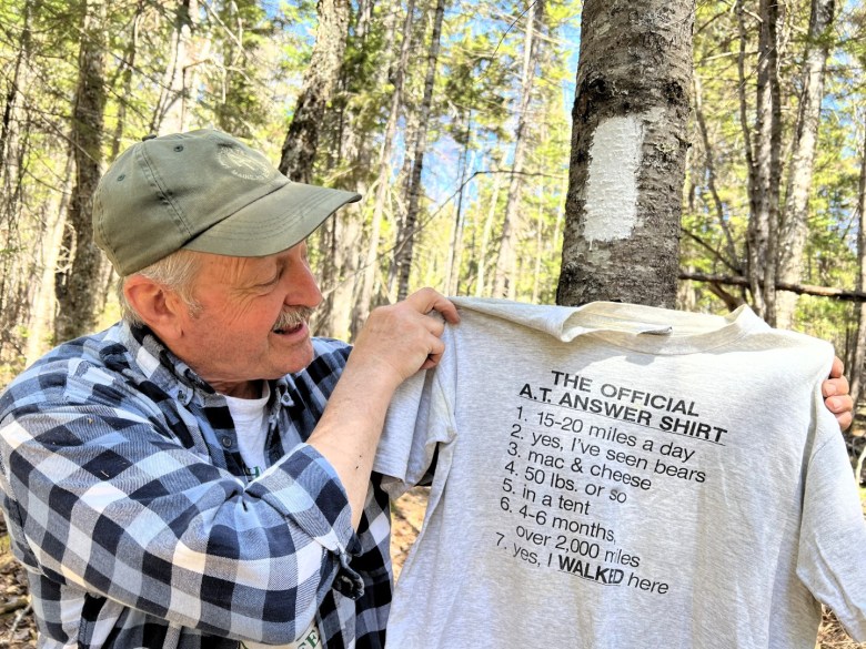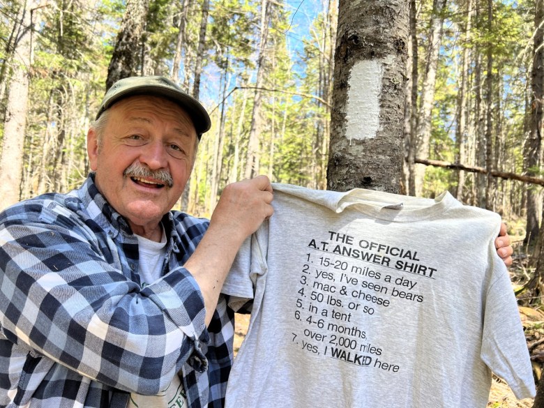 My good friend Dana Thurston of Raymond hiked the entire AT in 1991. It was at Trail Days in Damascus, Virginia, some 500 miles into the walk that Thurston (trail name “Stryder”) happened upon an eminently useful and fun item, the Official AT Answer Shirt, which covered the seven most common questions asked of thru-hikers.
