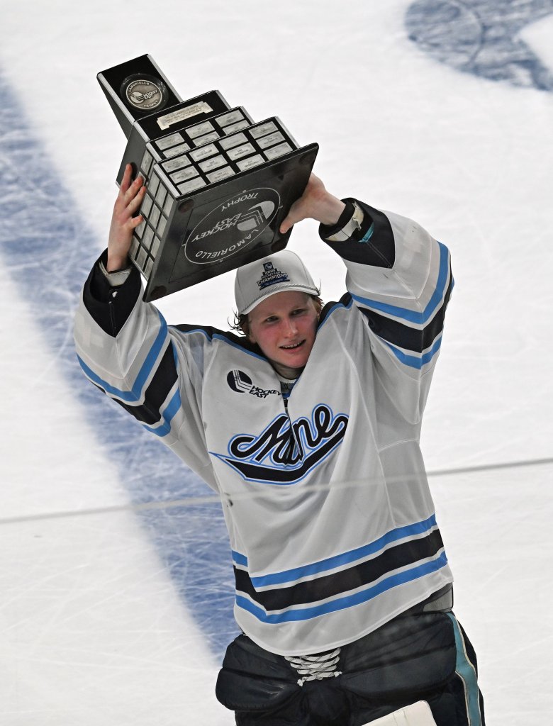 Maine goalie Albin Boija was named tournament Most Valuable Player, after making 60 saves on 65 shots in the semifinals and championship game.
