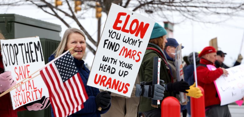 “Elon Musk donated millions to the Trump campaign,” she said, “and he’s been set free inside the government to wreck everything that provides services to regular people, and we’re losing our democracy because of him.”