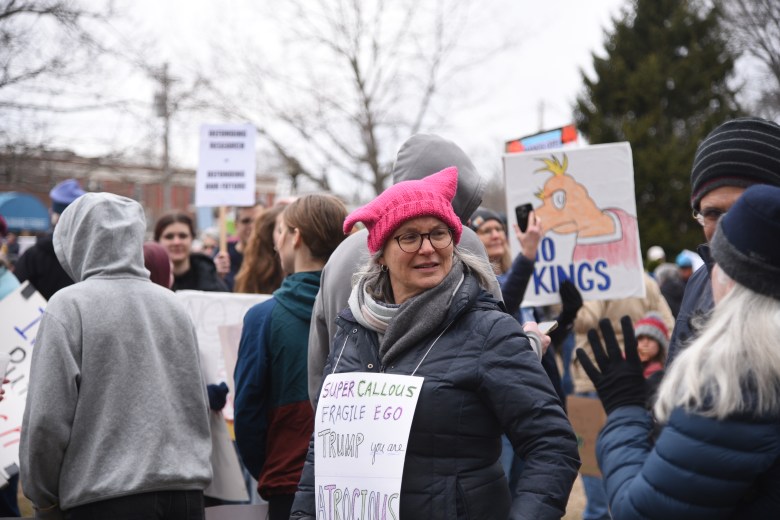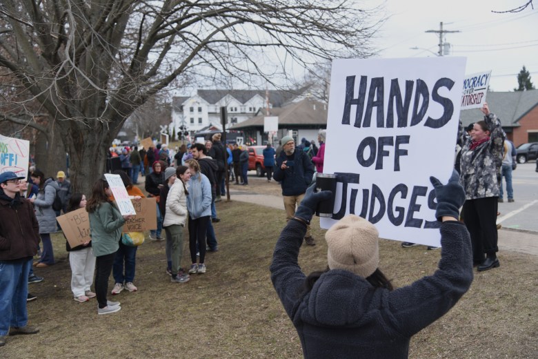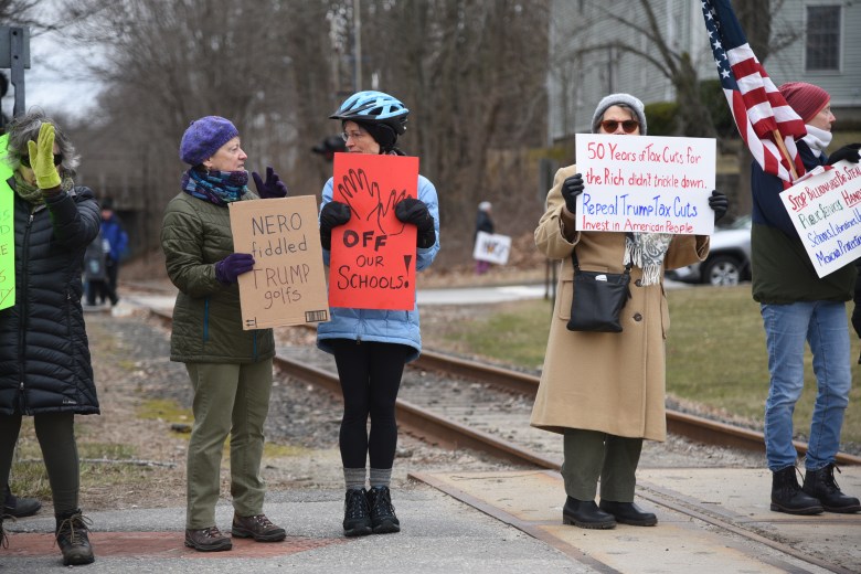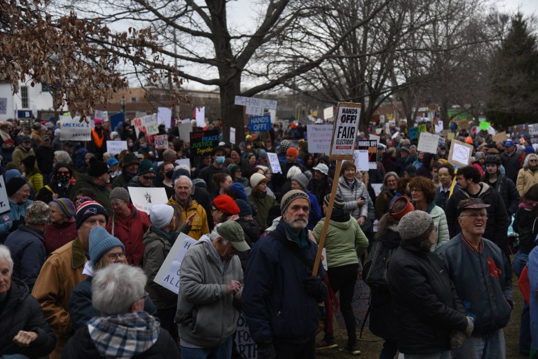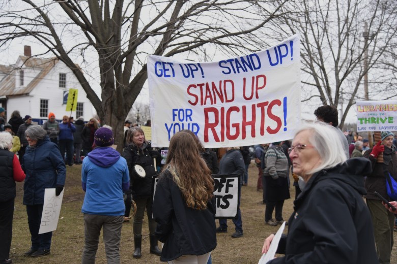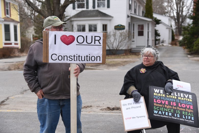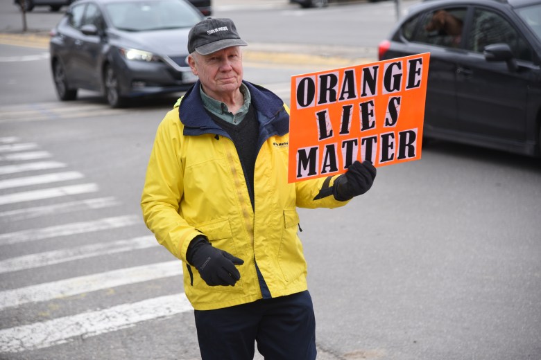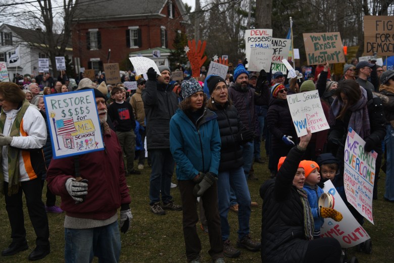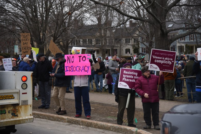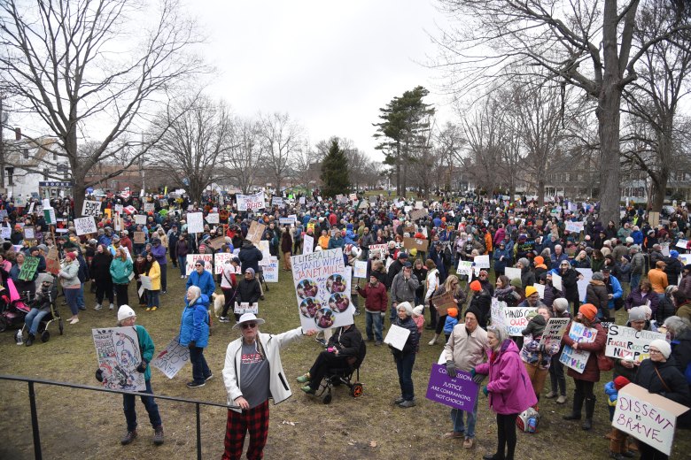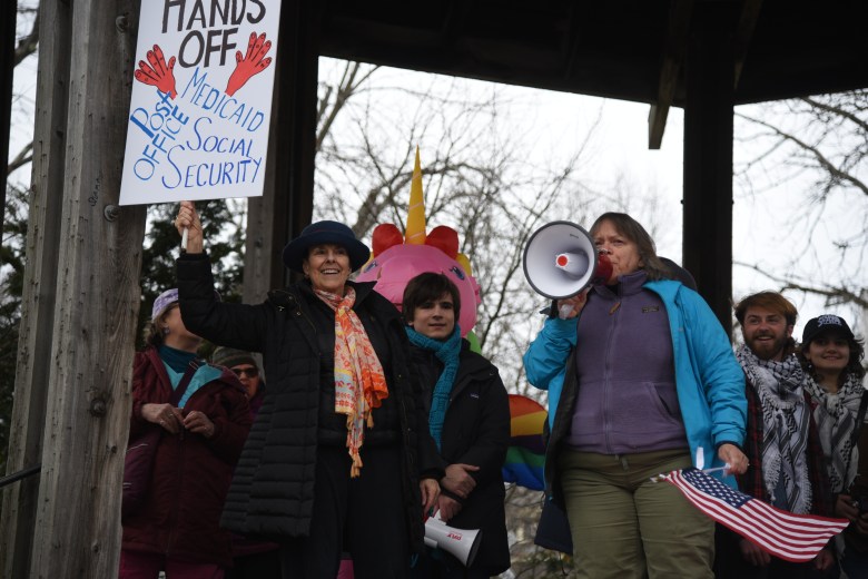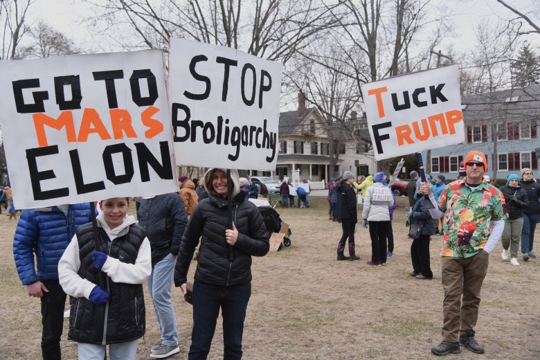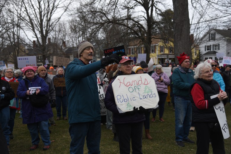 The Maine “Hands Off!” rally in Brunswick was among thousands of similar demonstrations held across the country. Protesters carried signs supporting the federal workforce, decrying Elon Musk and his Department of Government Efficiency, and more.