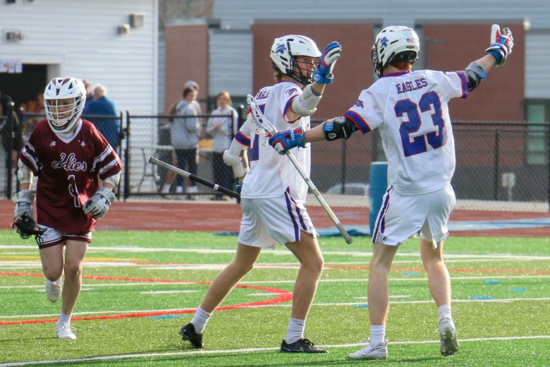 • While up a man with 5:55 left in the second, junior attacker Brennan Fitzpatrick found junior midfielder Phoenix Norton as Mt. Ararat tied the game. The Eagles retook the lead less than a minute before halftime, as Greenleaf converted a turnover and a ground ball from Norton. Momentum carried into the second half, as junior long-stick midfielder Nick White scooped a ball and raced downfield to give the Eagles a 4-2 lead.