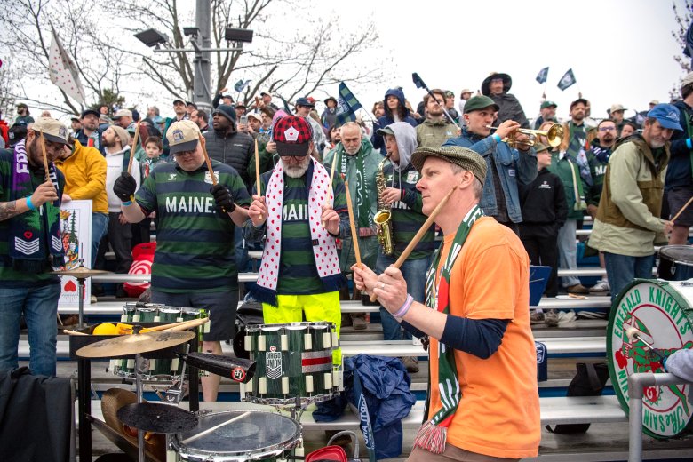 Almost immediately, the crowd — led by the Dirigo Union supporters group — began cheering encouragement.