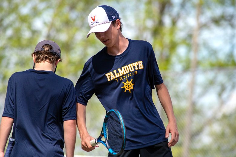 This time, three Falmouth teams advanced to the final day of competition. Falmouth’s No. 2 boys team, Dante Iannetta and Nick Roediger, beat the Brunswick tandem of Blake Belanger and Evan Williams, 6-4, 6-3.