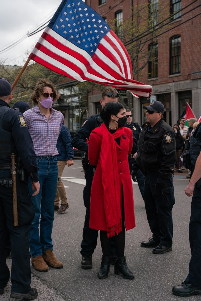 Fuller, who is also a lecturer at the University of Southern Maine, said the group wanted their act of civil disobedience to make a statement. Though it is anxiety-inducing to be arrested, she said, it’s empowering to be surrounded by like-minded people who are concerned about widespread starvation and bombing in Gaza.