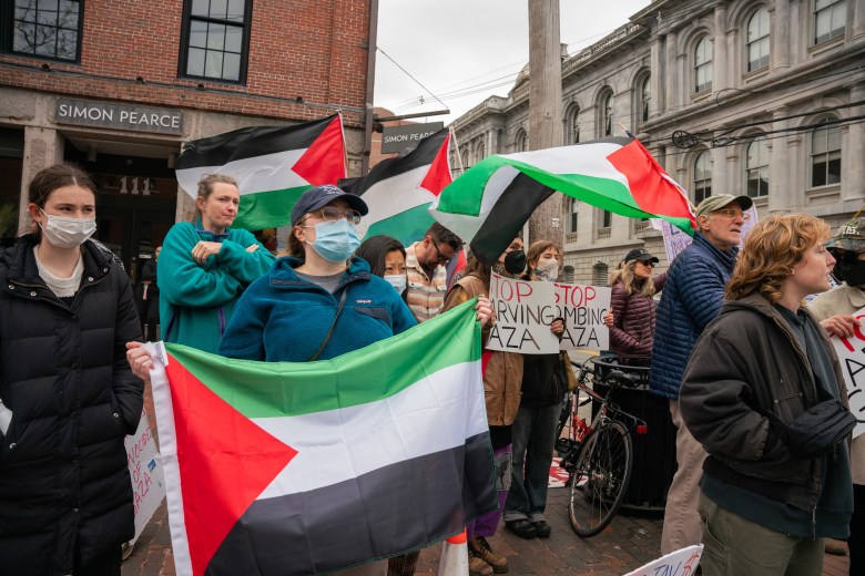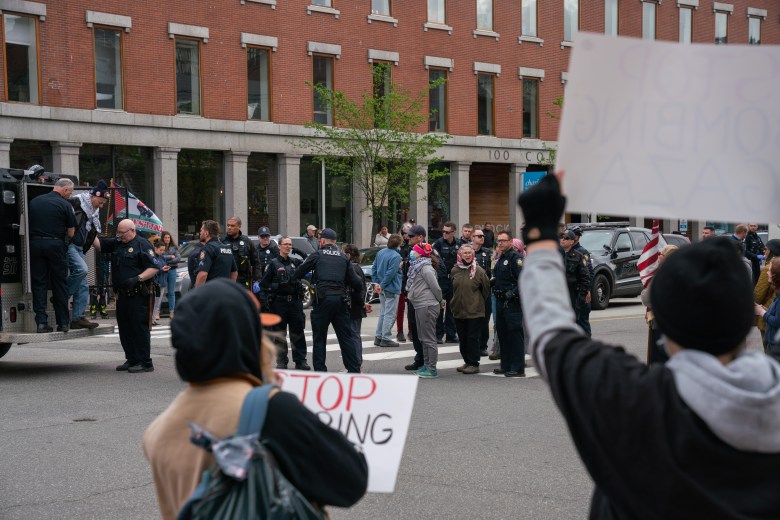 Patricia Corkins, 61, of Pembroke, said she was arrested for the first time at Wednesday’s protest. She and coalition member Erin Kiley are participating in a hunger strike with at least 25 others who will fast or consume only 250 calories per day in solidarity with people in Gaza.