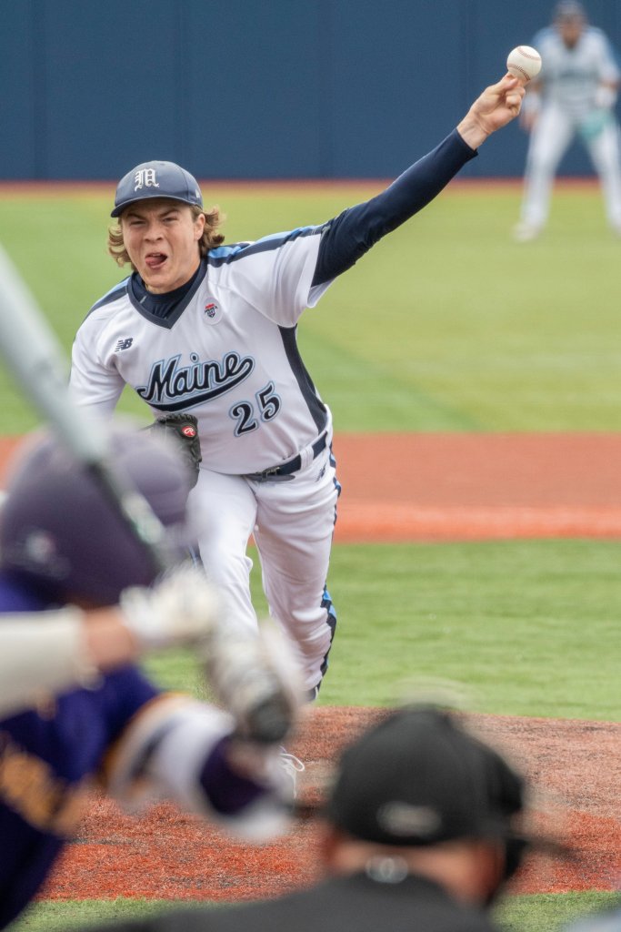 “Today’s loss is probably a microcosm of our season. Tight ballgame, we tried to get a little bit more out of (pitcher) Caleb (Leys). We had some opportunities to score some more runs. We had some opportunities to make some plays, and we just didn’t do it,” Maine coach Nick Derba said. “The fact of the matter is, we snuck into this tournament even with the (No. 4 seed). We really didn’t play well all year long. That game we played, we played that game a lot.”
