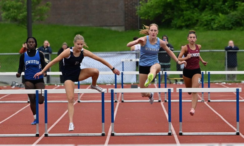 Jenni Flynn of Lewiston won the 100 hurdles. Top seed Tayla Pelletier of Windham, while leading her heat, hit the penultimate hurdle and fell, which caused her to fail to advance to the final.