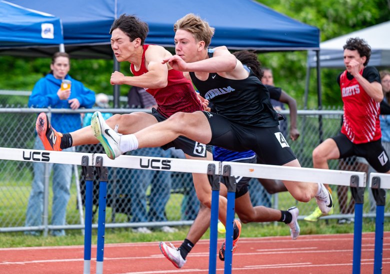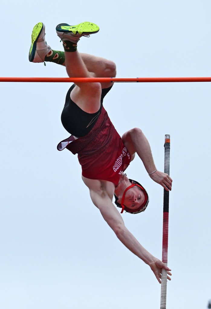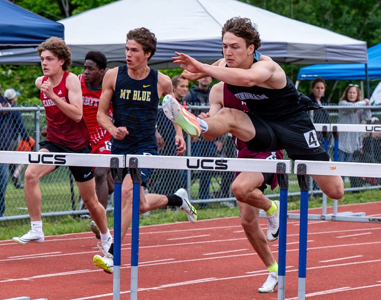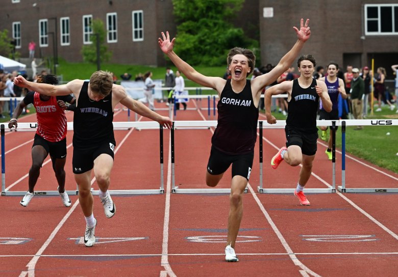 Windham senior Carter Engelman was another double winner. He claimed his first career state championship in the 110 high hurdles, nipping teammate Rory Good at the finish, and then tied with Scarborough’s Wyatt Martin for first in the pole vault with a personal-best vault of 15 feet.