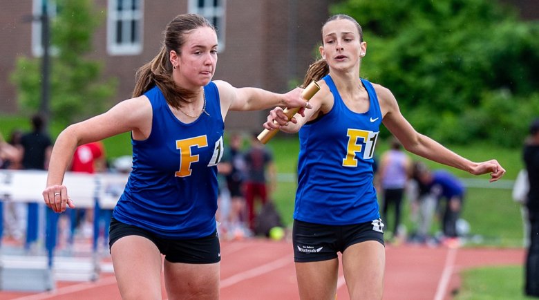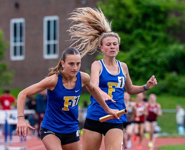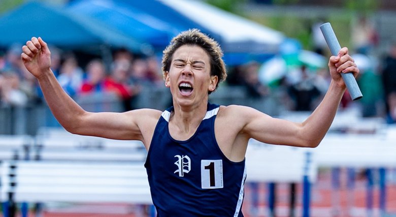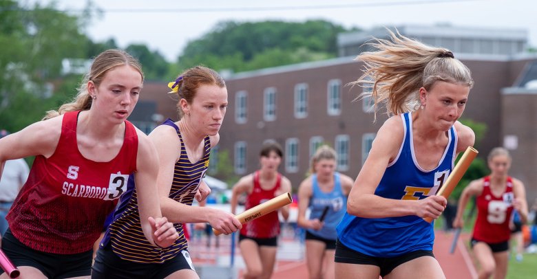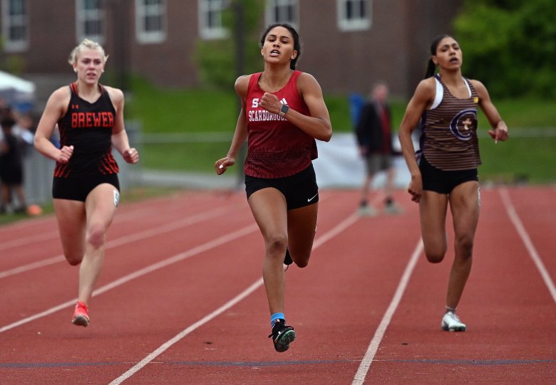 On the girls’ side, Scarborough’s Emerson Flaker was another top sprinter nursing an injury. She “tweaked or strained” her hamstring three weeks ago. That kept her out of the 100, which she’d won as a junior. But she dominated in repeating as champion in the 400 and 200, setting a school record of 25.11 seconds in the 200. She started the day by helping the Red Storm finish second in the 3,200 relay, then finished it with a gritty anchor leg in the 1,600 relay, going from third to first on the final lap.
