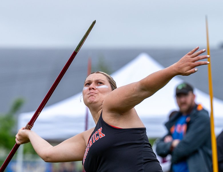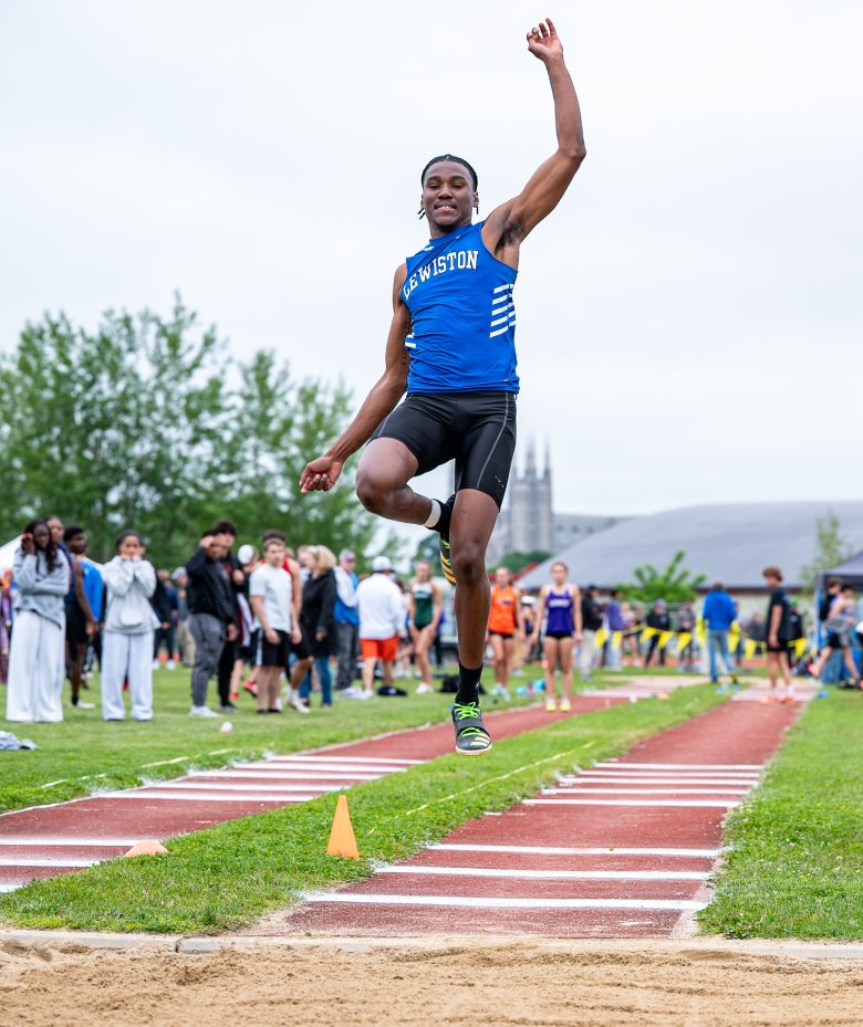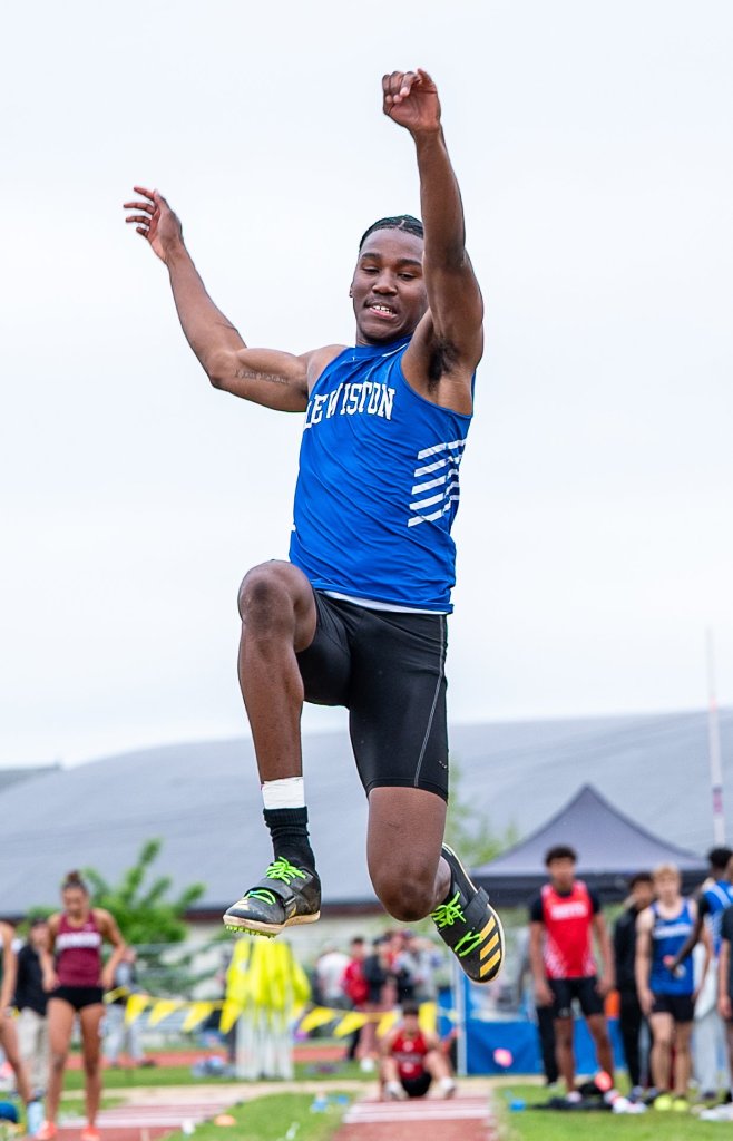 Lewiston’s Ryker Paradis got the opportunity to finish his in-state career at his home facility. The meet was scheduled to be held at Brewer Community School on Saturday before weather caused a reshuffling of the schedule. Paradis, headed to the University of Maine, easily won the boys shot put by over 10 feet with a personal-best of 63-10. He also won the discus by a wide margin with a throw of 168-8 and placed third in the javelin at 167-7. Hampden Academy’s Andrew Henaghen won the javelin. Henaghen’s best of 196-6 puts him in the top 50 nationally, according to MileSplit.com.