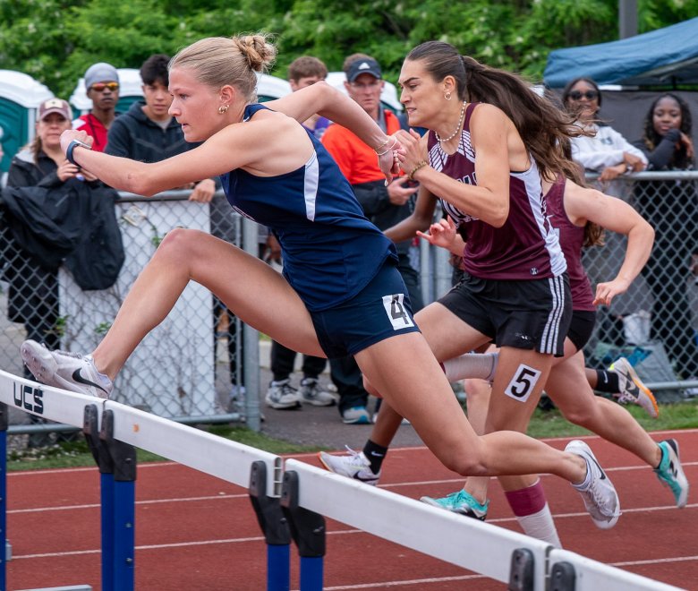 In the 300 hurdles, second seed Anneliese Collin of Portland pulled away from top-seed Pelletier in the final 30 meters.