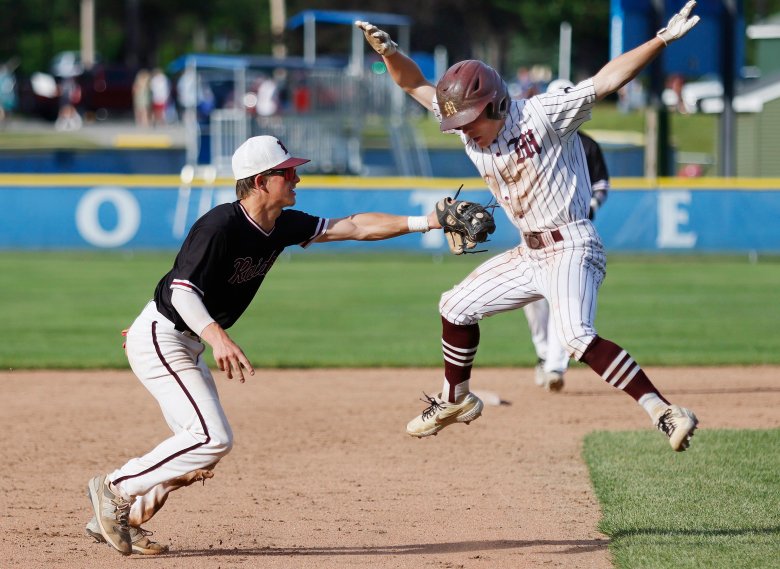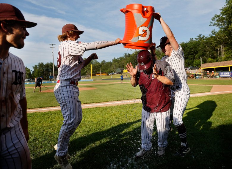 STANDISH — The words “free bases” were said often in the Monmouth Academy dugout during the Class C baseball state championship game Saturday at Saint Joseph’s College.