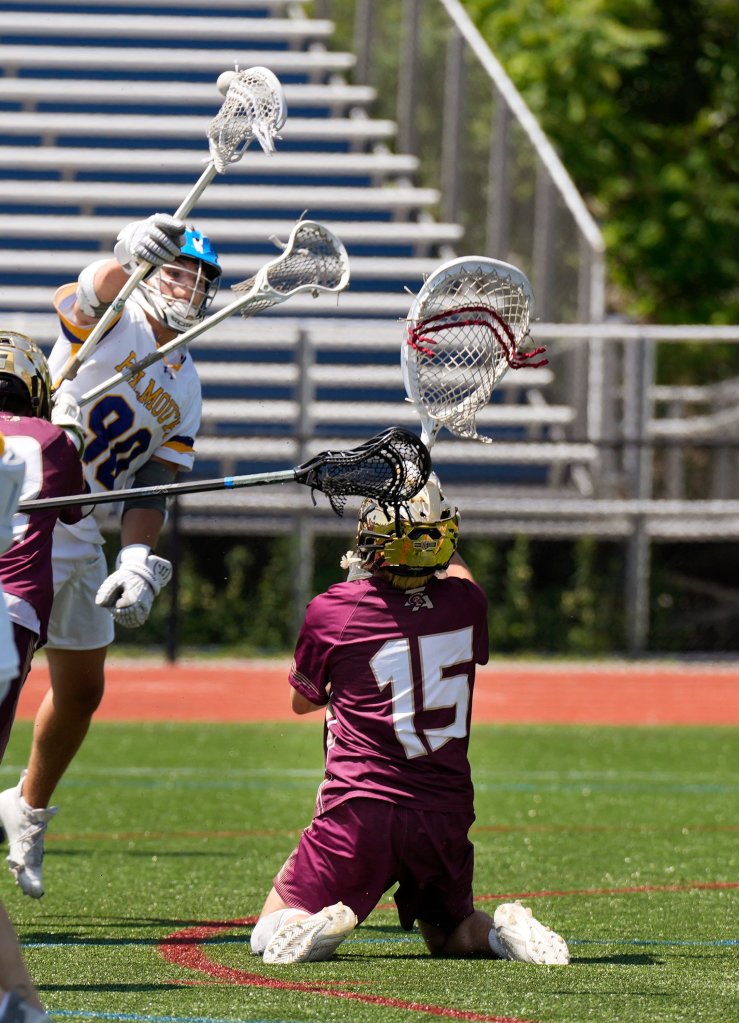 Falmouth, which averaged 18.3 goals per game prior to Saturday and had not scored less than 14 all year, didn’t convert until Evan Yale (two goals, one assist) found the back of the net with 32.1 seconds remaining in the first quarter.