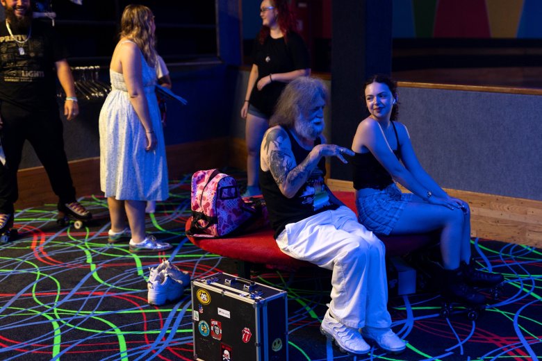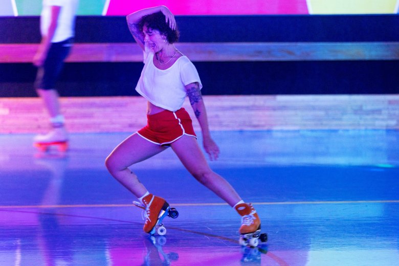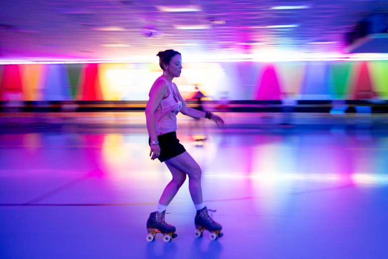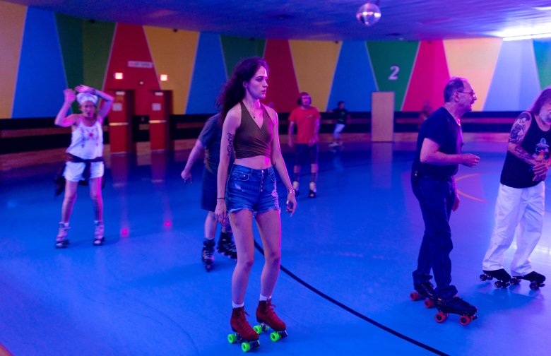 Amid the sounds of Donna Summer, the third-generation skater glides across the polished blue floor as people hold their phones up to film.