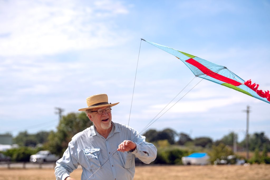 On this particular morning, he wiggled the line of the kite as if he was a wizard casting a spell. His white and red kite caught a gust and gently bobbed a few feet above his head.