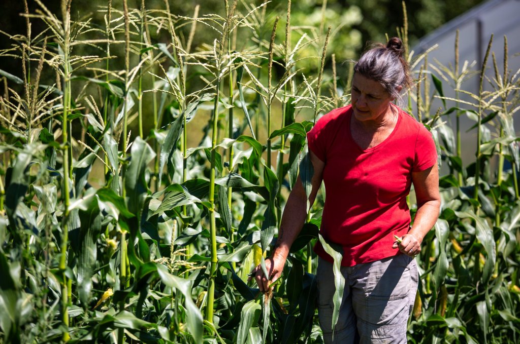 Keena Tracy looks over her corn crop Aug. 21 at Little Ridge Farm in Lisbon. The corn will soon be available for the 178 participants in her Community Supported Agriculture farm program. (Libby Kamrowski Kenny/Staff Photographer)