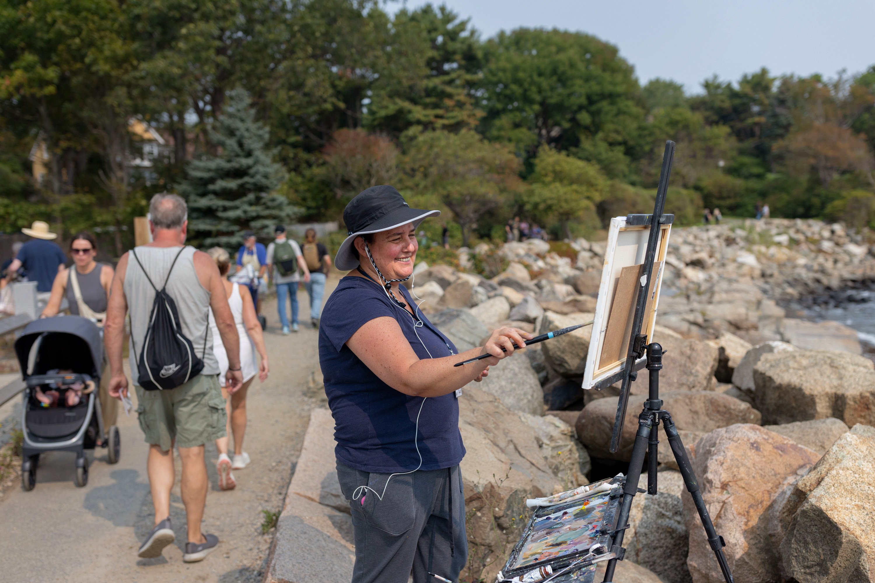 OGUNQUIT — Local artists flocked to Marginal Way on Saturday morning, setting their easels up outdoors along the picturesque trail to capture the oceanfront landscape in paint.