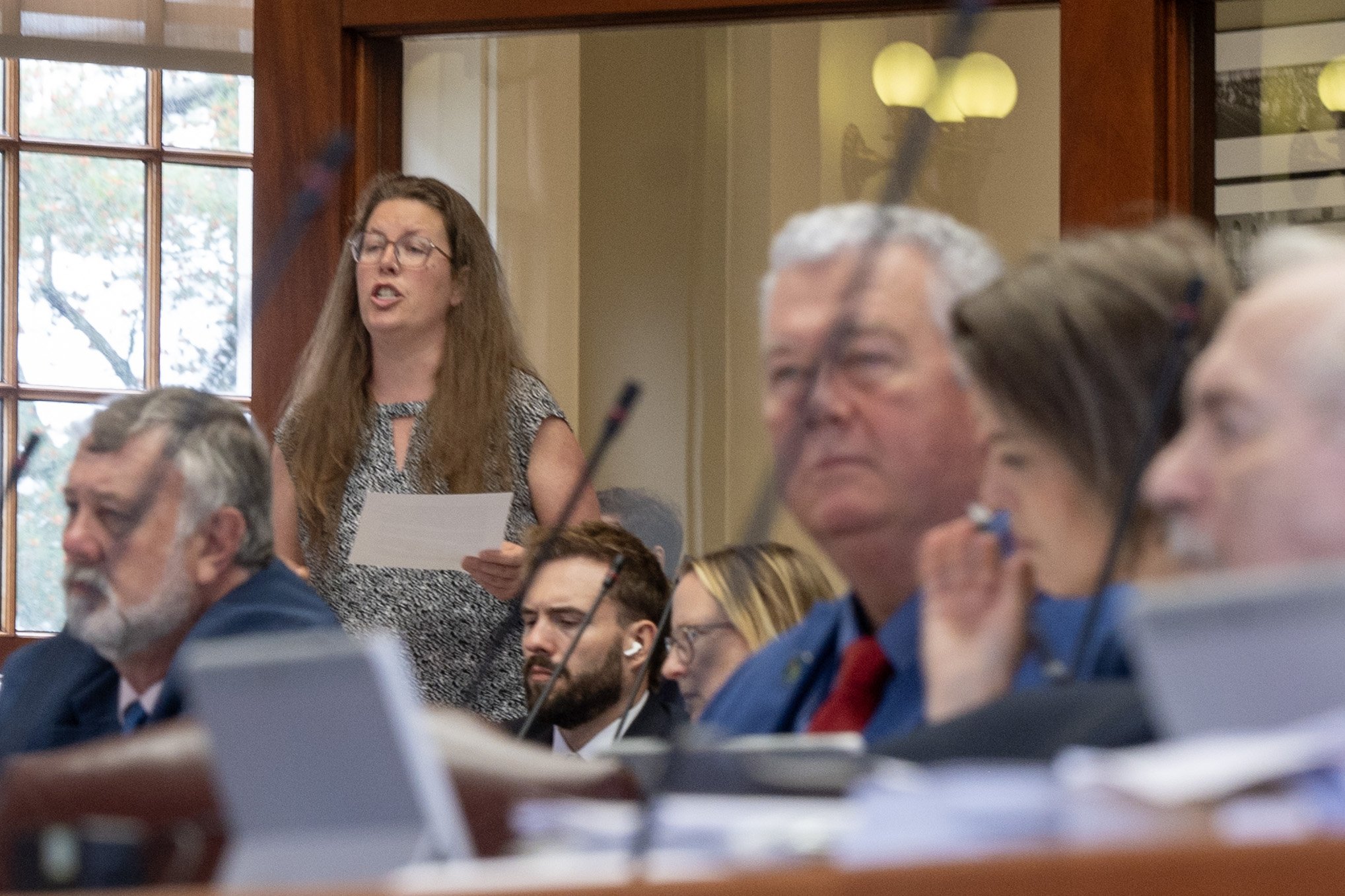 Rep. Nina Milliken, D-Blue Hill, speaks against a budget proposal during the morning session at the Maine State House in Augusta on June 18, 2025. (Joe Phelan/Staff Photographer)