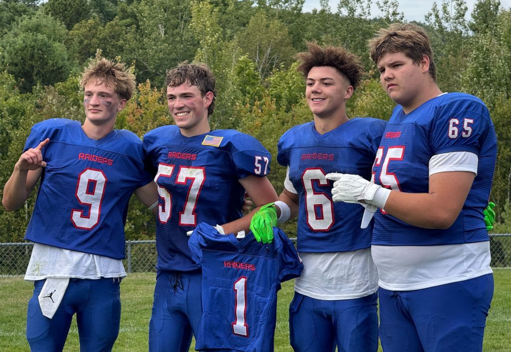 Memories of the former Raider were on the back of Oak Hill’s helmets Saturday in the form of stickers featuring his nickname, “Iggy,” and angel wings. They were in the end zone as players Braden Dubuc, Levi Marks, P.J. Smith and Carson Morin held up his No. 1 jersey following a 32-6 win over Morse.
