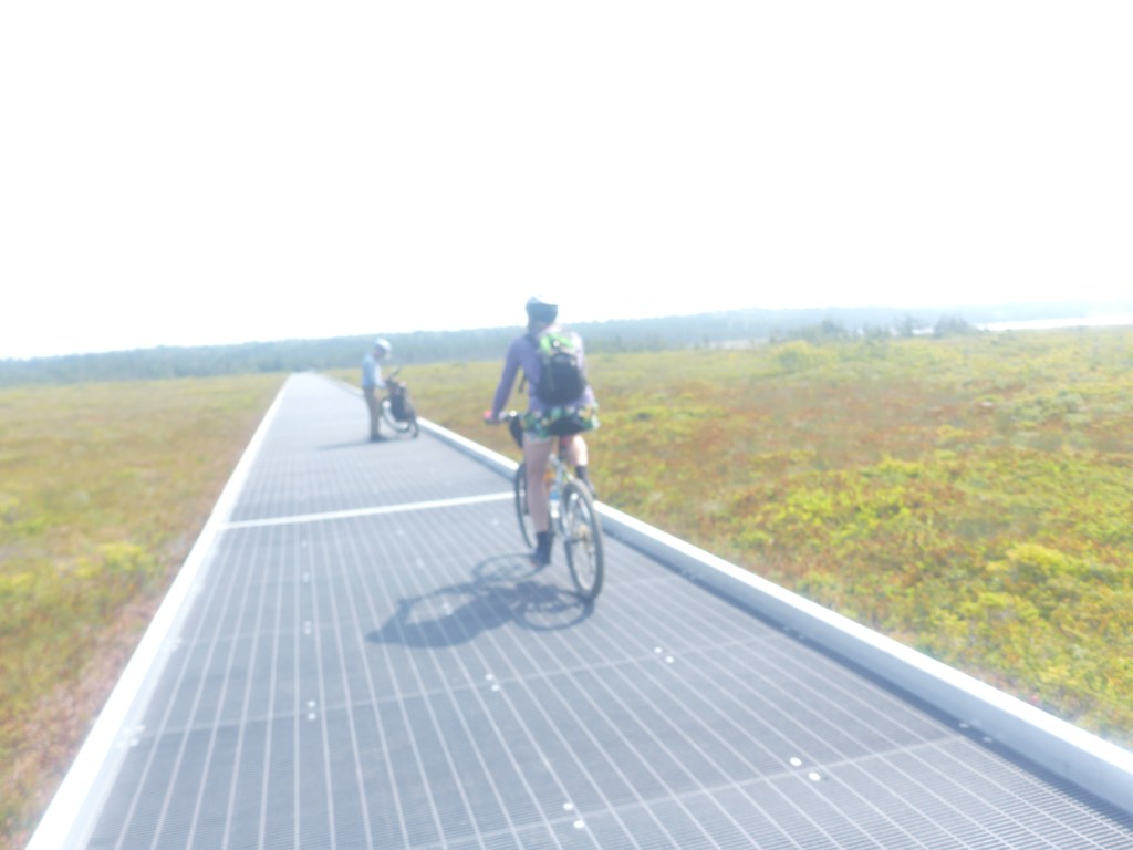 Angling left onto Cranberry Point Road, we cycled the bumpy gravel road to scenic Cranberry Point where we stopped to enjoy the views of rugged West Quoddy Head in the distance. The recently constructed Friendship Trail that begins at Cranberry Point was a priority for us. The new, heavily publicized trail crosses a massive bog where a unique bridge has been built.