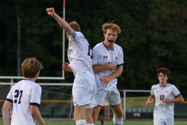 Edward Little took the pitch with urgency after the halftime break and broke through in the 67th minute. Brunswick’s Edgar Meardon (six saves) couldn’t hang on to a corner kick and the ball bounced in front of the goal line. Edward Little’s Orrin Slover kicked it out of the scrum and off the chest of Brunswick defender Brendan Shaw for the goal.